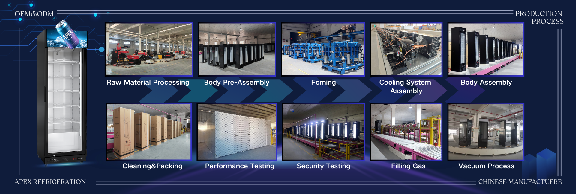 Productos principales:Refrigerador de exhibición, refrigerador de supermercado, congelador de exhibición, refrigerador de barra trasera, refrigerador de cajero