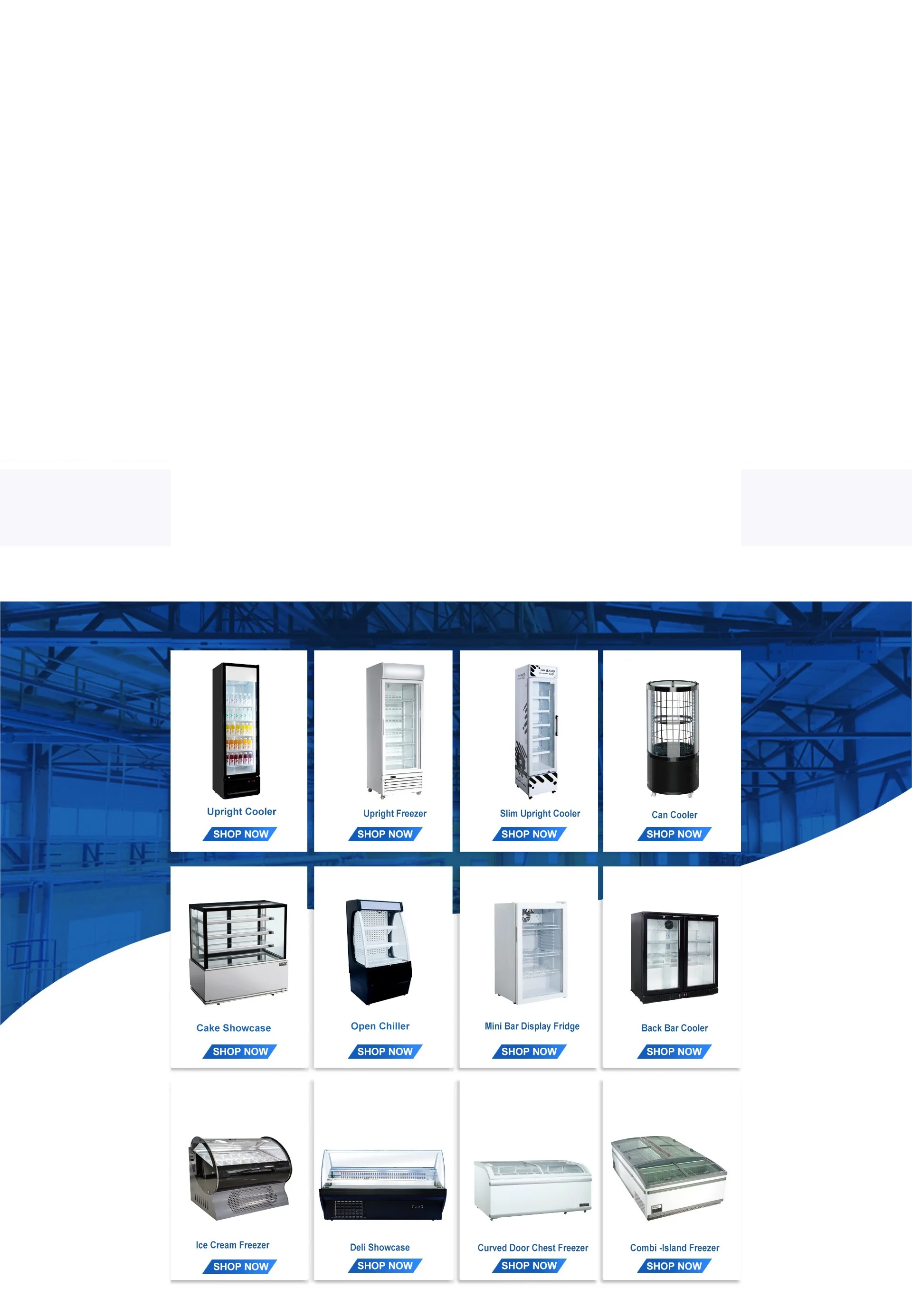 Ana ürünler:Ekran soğutucu, süpermarket buzdolabı, ekran dondurucu, arka Bar soğutucu, kasiyer soğutucu